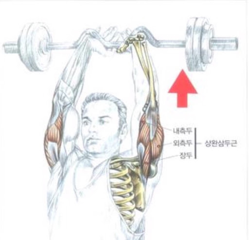 두번째 사진과 같은 오버헤드 익스텐션같은 운동은 장두를 적절한 신장길이로 놓이게 하는데